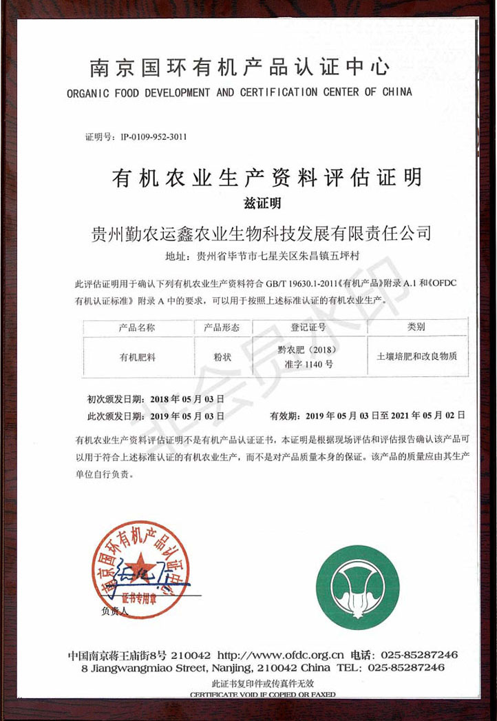 貴州勤農(nóng)運(yùn)鑫農(nóng)業(yè)生物科技發(fā)展有限責(zé)任公司其前身是"遵義浩源農(nóng)業(yè)發(fā)展有限公司",于2013年在遵義市蝦子鎮(zhèn)創(chuàng)建,2017年受遵義市城市建設(shè)拆遷影響,于當(dāng)年通過(guò)畢節(jié)市政府招商引資項(xiàng)目,由遵義市蝦子鎮(zhèn)搬遷至畢節(jié)市七星關(guān)區(qū),正式更名為"貴州勤農(nóng)運(yùn)鑫農(nóng)業(yè)生物科技發(fā)展有限公司"。公司總投資9000萬(wàn)元,占地面積60畝,建筑面積約30000m2,是一家集科研、生產(chǎn)、銷(xiāo)售于一體的高科技肥料生產(chǎn)企業(yè)。公司目前擁有高級(jí)工程師2人,工程師3人,技術(shù)員工10人,季節(jié)性生產(chǎn)工人30余人。公司現(xiàn)有兩條自動(dòng)化肥料生產(chǎn)線(xiàn),采用自動(dòng)翻料、自動(dòng)曝氣、自動(dòng)包裝的模式提高生產(chǎn)效率,保證平均日生產(chǎn)能力達(dá)300噸以上,年生產(chǎn)能力達(dá)5萬(wàn)噸以上。我公司建立了質(zhì)量、環(huán)境、職業(yè)健康體系認(rèn)證,并在與貴州省檢測(cè)院簽訂合作協(xié)議的基礎(chǔ)上,在貴州大學(xué)專(zhuān)家團(tuán)隊(duì)的指導(dǎo)下建立了專(zhuān)業(yè)肥料質(zhì)量化驗(yàn)室。近年來(lái)我公司銷(xiāo)量增長(zhǎng)迅速,與貴州茅臺(tái)集團(tuán)、省內(nèi)各大果業(yè)公司形成產(chǎn)銷(xiāo)合作關(guān)系,使得銷(xiāo)量得到了保障。